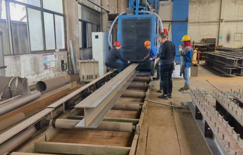 鋼結(jié)構(gòu)拋丸機工作原理:???? 鋼結(jié)構(gòu)拋丸機是將工件吊放在輸送輥道上,輥道輸送系統(tǒng)將工件向前輸送,當工件...